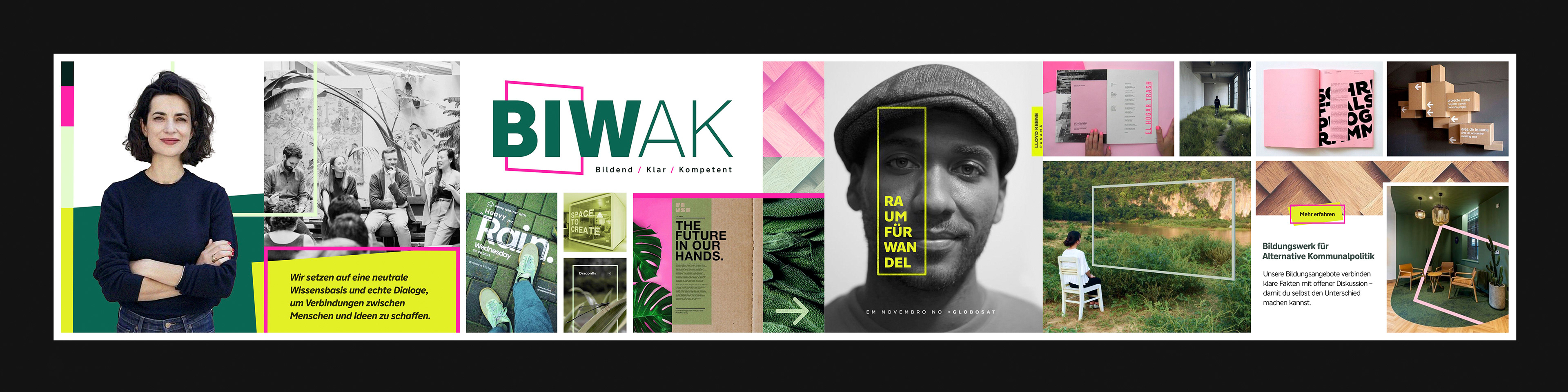 The Berlin-based educational organization for alternative local politics (BiwAK) commissioned me to design a new logo. Since the website was also to be redesigned as part of this project, I worked closely with my colleague and web designer Deniz Cicek from Hamburg, especially during the concept phase.